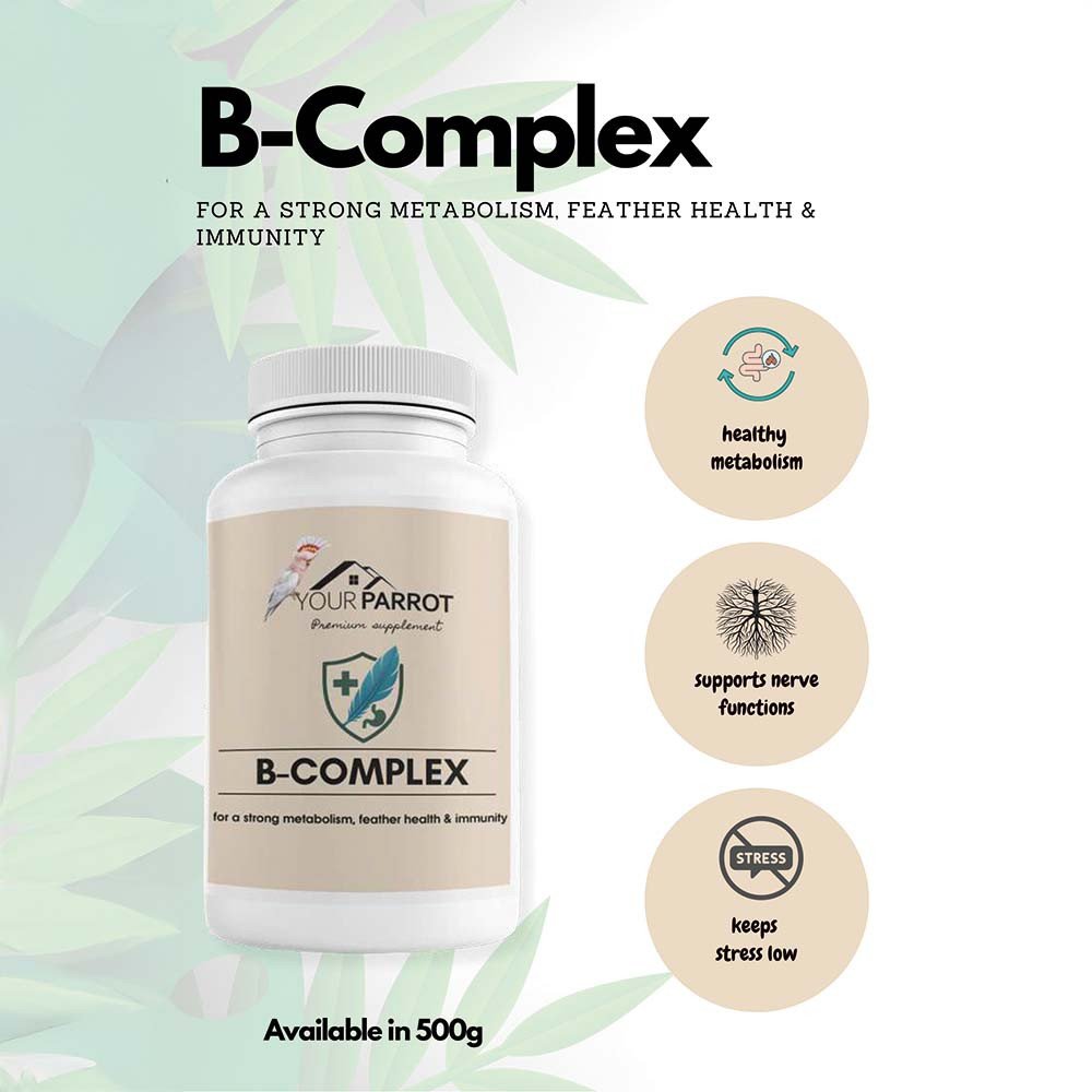 Your Parrot Supplement B-Complex (500g Powder) is a water-soluble vitamin supplement formulated to help correct B-vitamin deficiencies in pet birds.