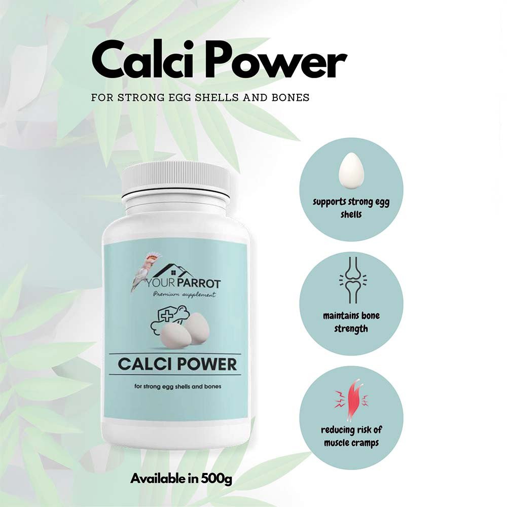 Calcium is vital for all parrots, with species such as African Greys having particularly high requirements. Note: Calci Power is not water-soluble and should be mixed into soft foods. Consultation with a veterinarian is recommended before use.